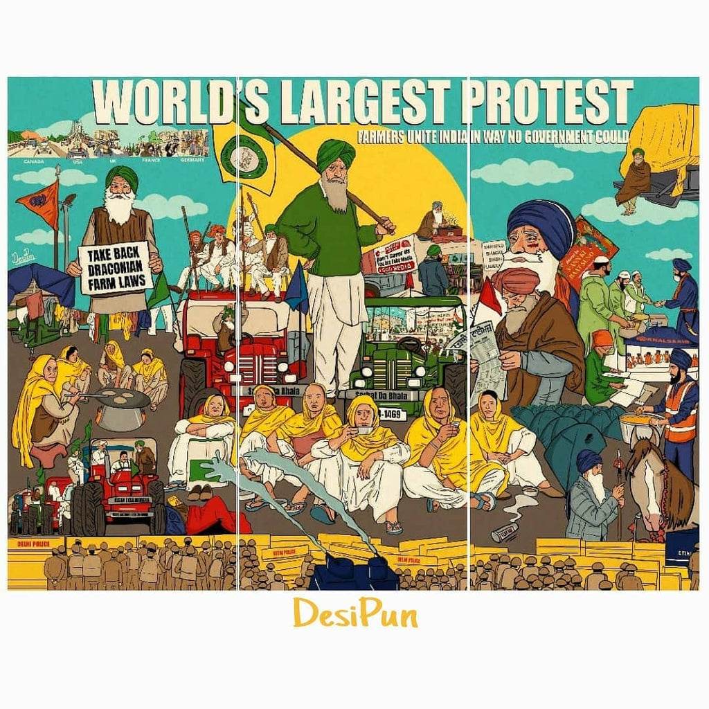 Artwork dedicated and inspired from the real-life experiences of the world's largest Protest happening currently in India & spread across diaspora.